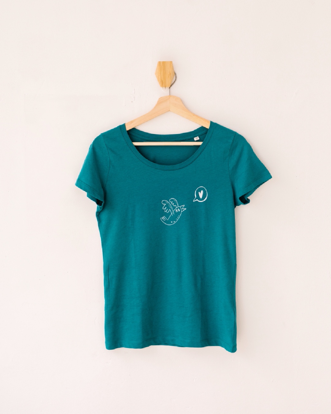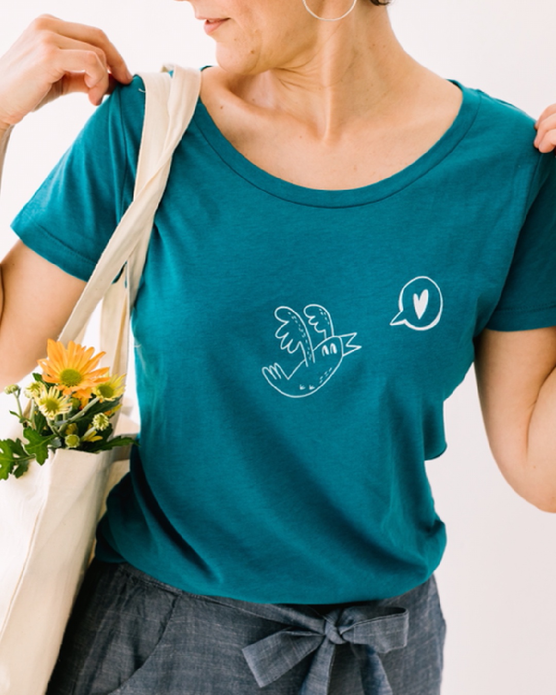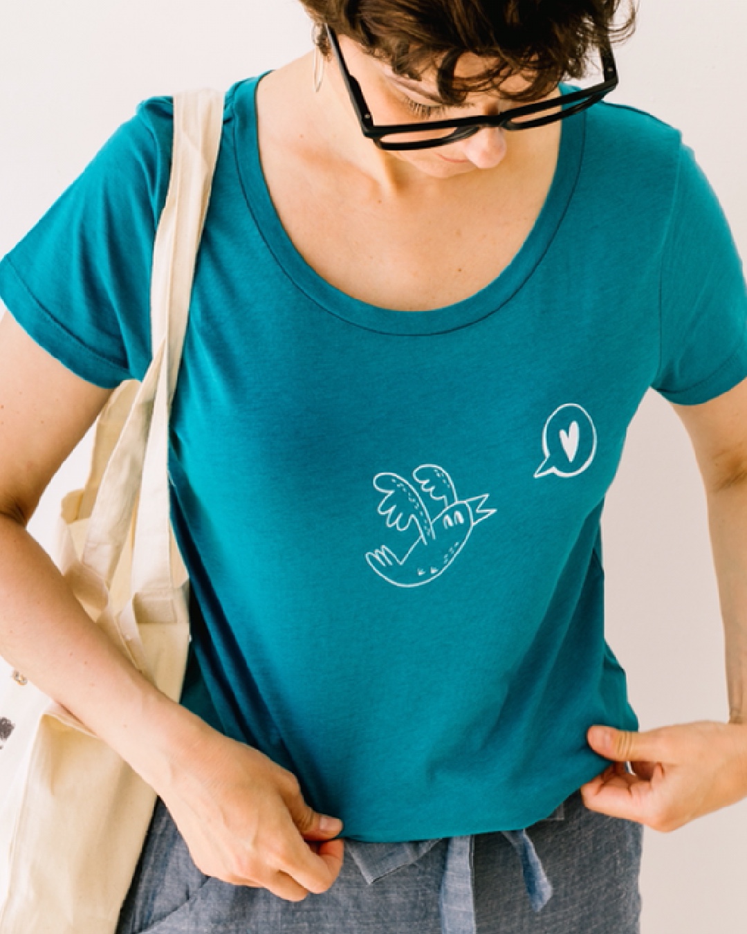 ¿Cómo es tu camiseta azul de cuello abierto Libre como un pájaro?