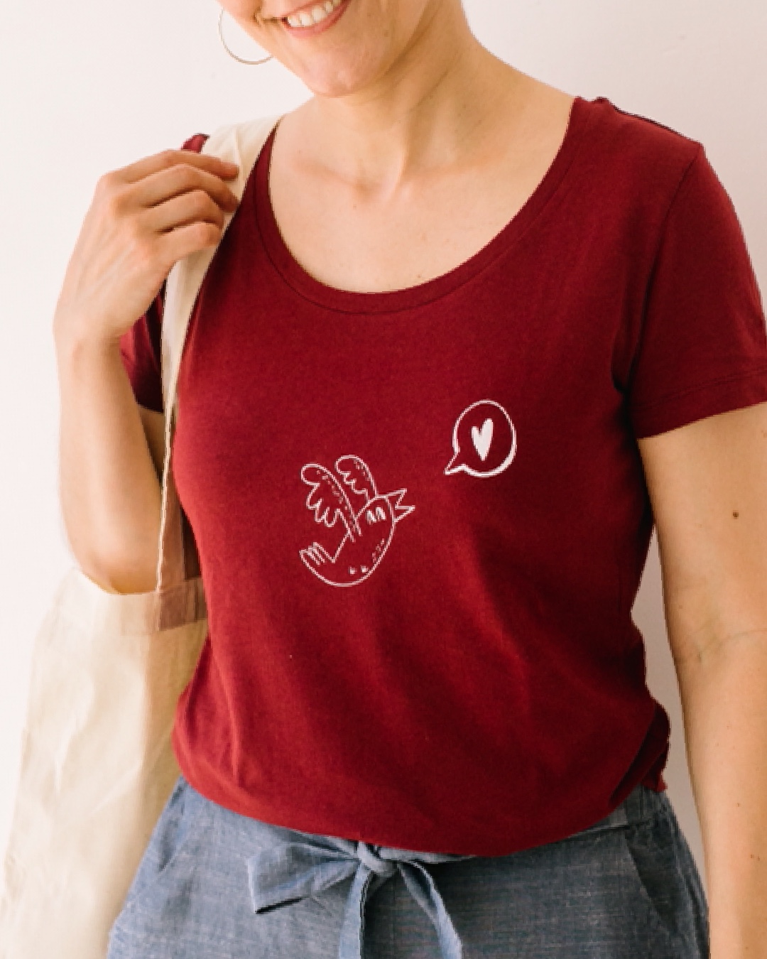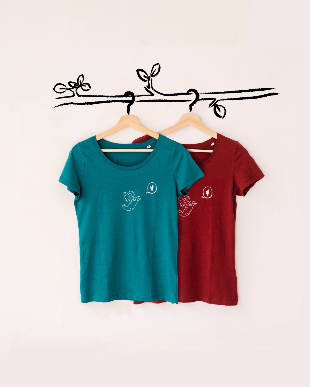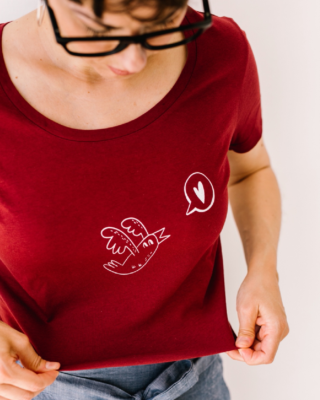 ¿Cómo es tu camiseta azul de cuello abierto Libre como un pájaro?