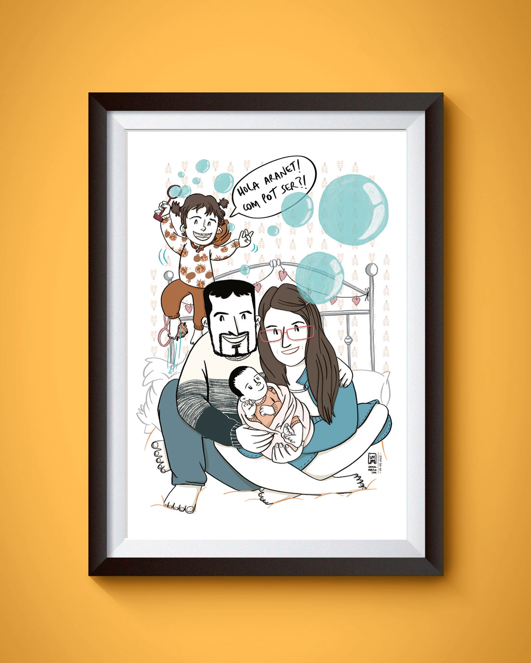 Las ilustraciones de Inma son uno de los recuerdos más geniales que tengo de mis peques. Consigue captar la esencia de cada momento a través de sus pinceles. Sus dibujos derrochan talento, cariño y mimo por el detalle. Desde luego un regalo único.
