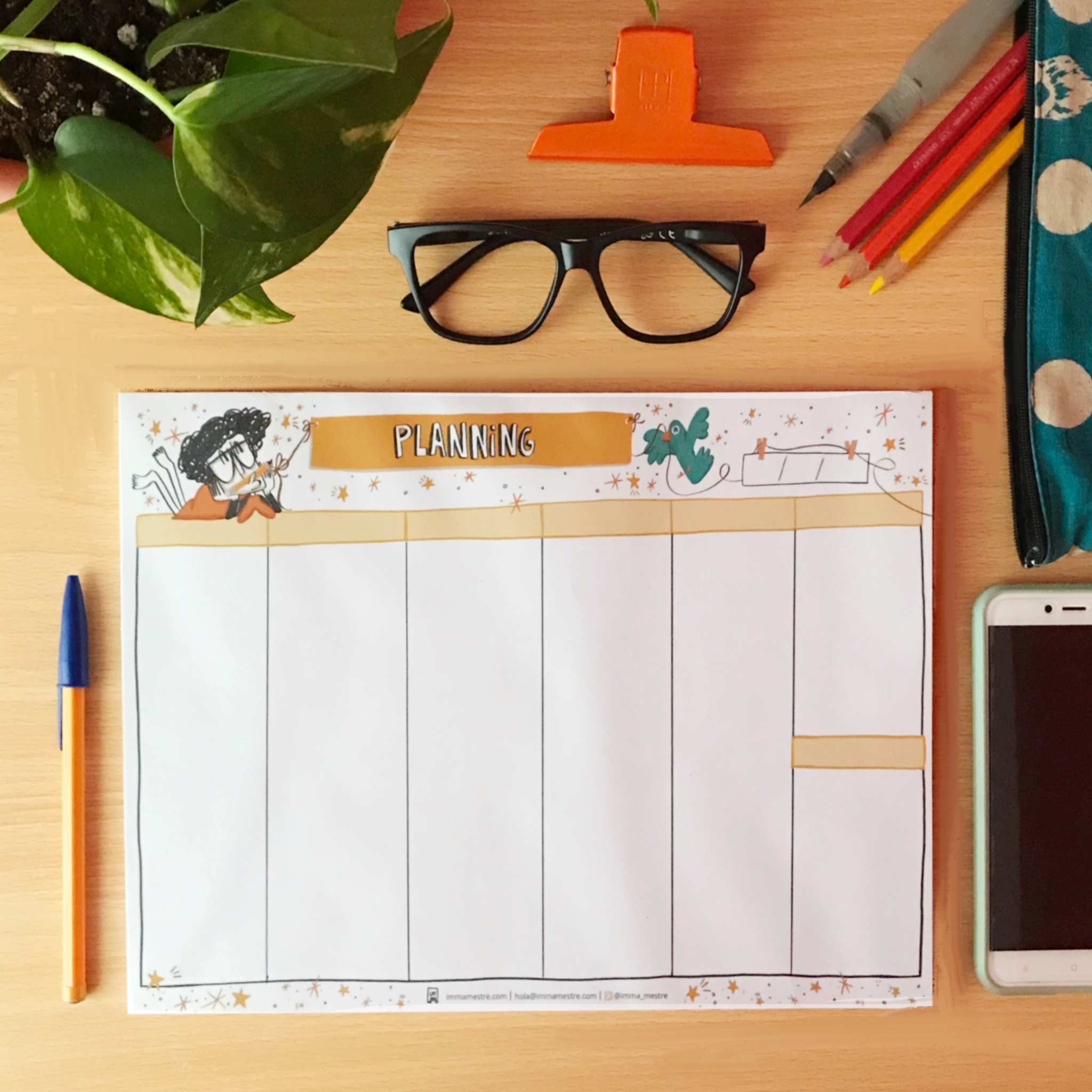 Planificador semanal ideal para tener las tareas de la semana siempre visibles en tu escritorio o estudio.