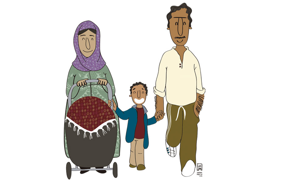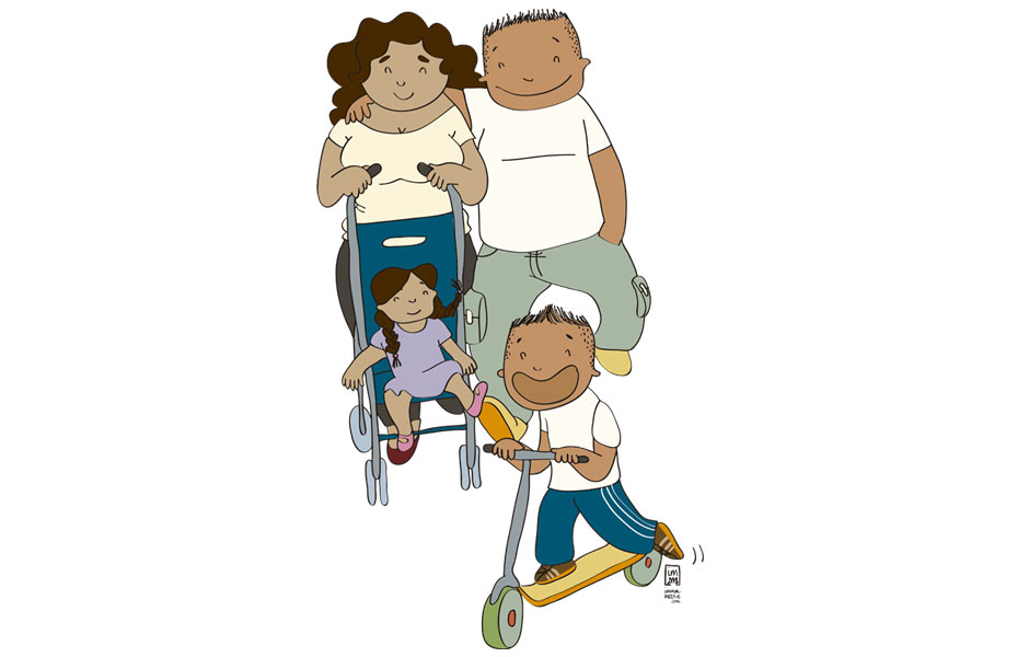 Ilustraciones para hacer un vinilo y rotular el escaparate de la farmacia La Florida de L’Hospitalet del Llobregat (Barcelona), con el objetivo de dar a conocer el servicio de asesoría a la familia (Club Mamis) que ofrece la farmacia.