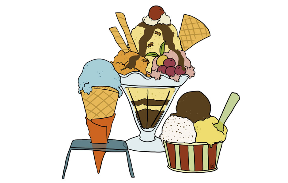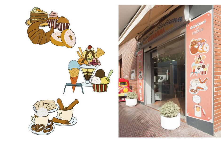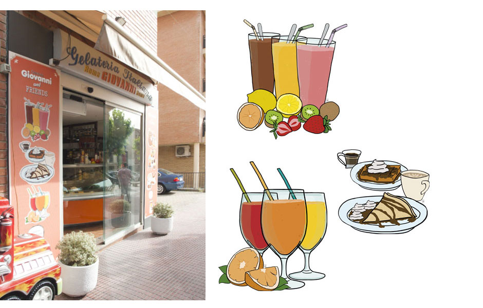 Ilustraciones para la fachada de la heladería Giovanni de Esparreguera (Barcelona).