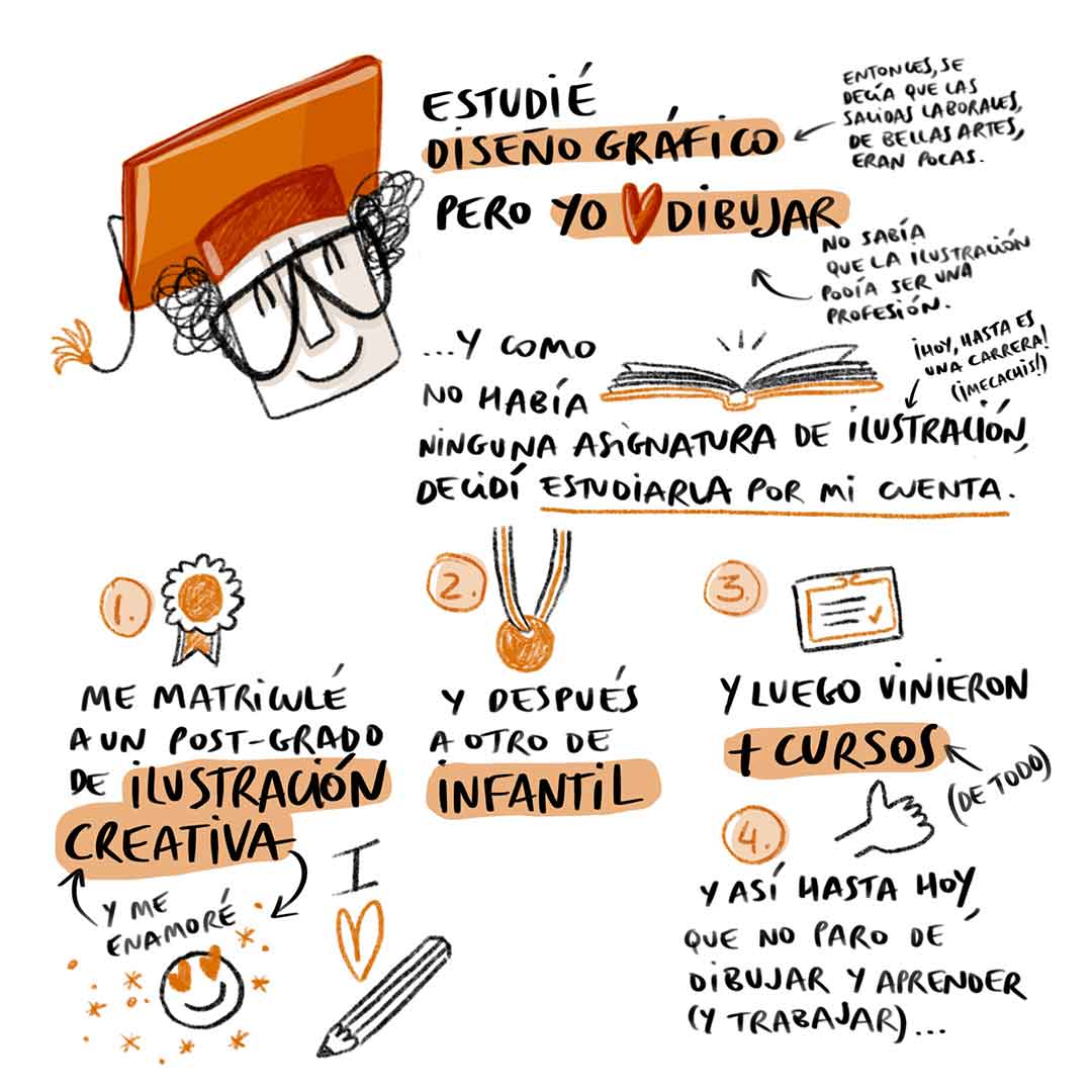 Hablo a través de ilustraciones porqué es como mejor me expreso. Me encantan las historias, pero si hay que contarlas, prefiero dibujarlas.