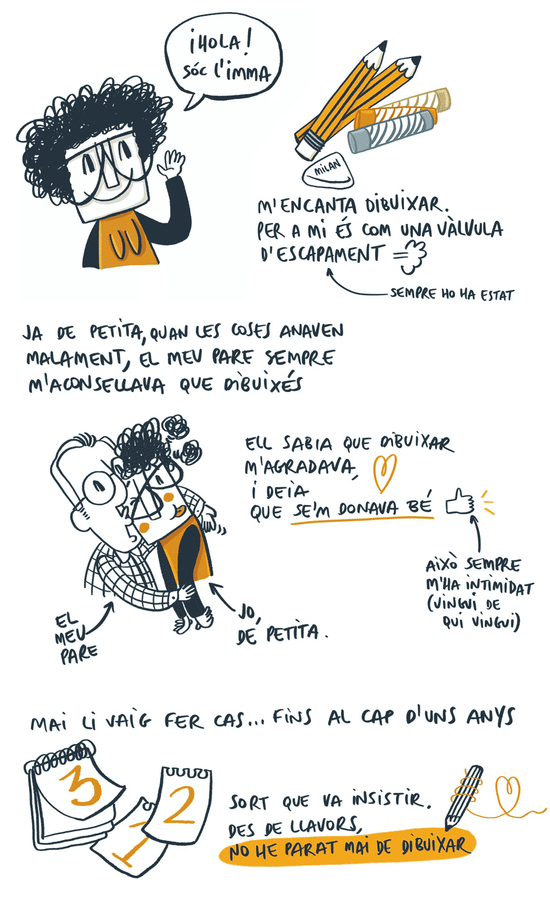 Parlo mitjançant il·lustracions perquè és com millor m’expresso. M’encanten les històries, però si s’han d’explicar, prefereixo dibuixar-les.